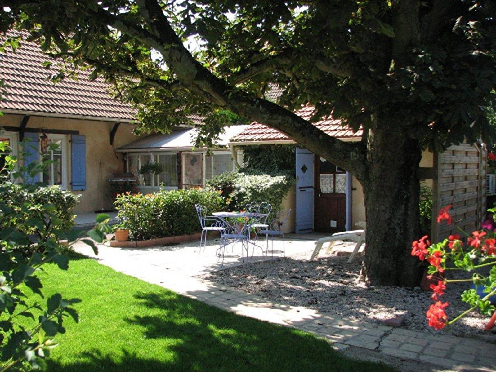 Jean vous accueille au sein d’une atypique villégiature aménagée dans l’esprit d’un "mini appartement d’hôtes" (littérale "maisonnette" totalement indépendante lovée dans une aile de la maison) à l’endroit d’une ancienne dépendance agricole (four à pain) de la ferme bressanne traditionnelle chargée "d’histoire locale" & intégralement restaurée qu’il occupe (jadis café de village qui abritait une salle de danse !). Paisible petit village résidentiel, blotti en pleine campagne agricole bressanne, entre champs & prairies, à l’orée de la vaste forêt domaniale de Pourlans, littéral "poumon vert" sauvage de 660 ha parsemé d’étangs & de chemins pédestres (à parcourir à pied ou VTT), jouxtant la Saône & le Doubs (paradis des kayakistes & pêcheurs, célèbre pour ses silures, sandres ou carpes, doté de plages naturelles), remarquable écosystème protégé en "Zone Natura 2000" (exceptionnelle réserve ornithologique riche de 160 espèces d'oiseaux et de variétés végétales très rares). Apaisant cadre champêtre & naturel environnant, relaxant & reposant. Chambre de bon confort au beau volume. Chaleureux cachet campagnard contemporain. Ambiance douce & dépaysante. Large terrasse ombragée, blottie sous un marronnier, ouverte sur un agréable jardin privatif clos soigneusement végétalisé & fleuri. Accès à une pièce de vie privative jouxtant la chambre (cuisine complète, espace repas & détente). Possibilité de visiter le poulailler & les chevaux du propriétaire parqués à l’arrière de la maison.