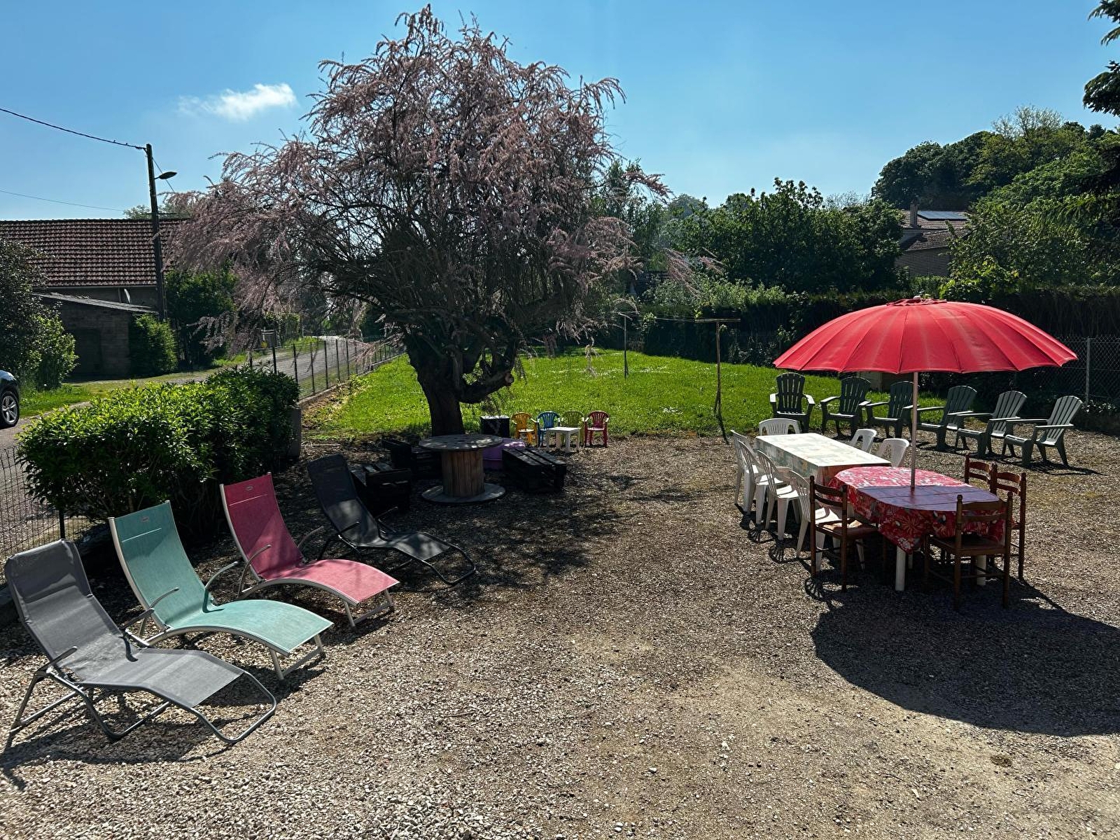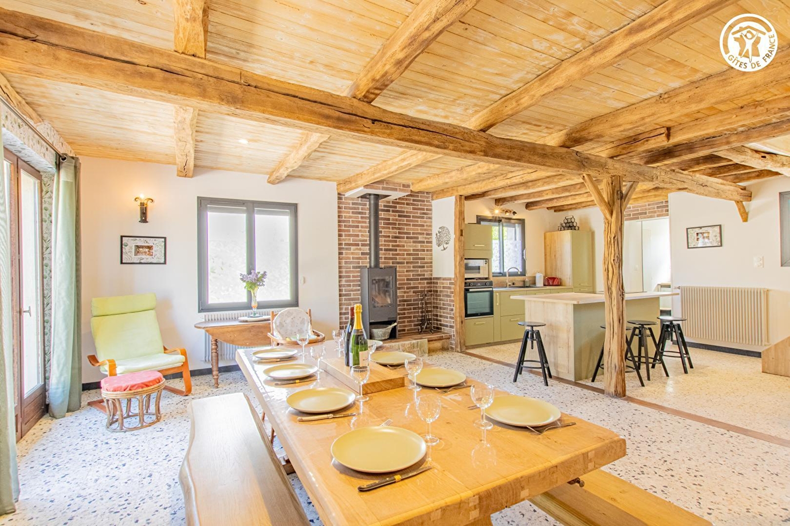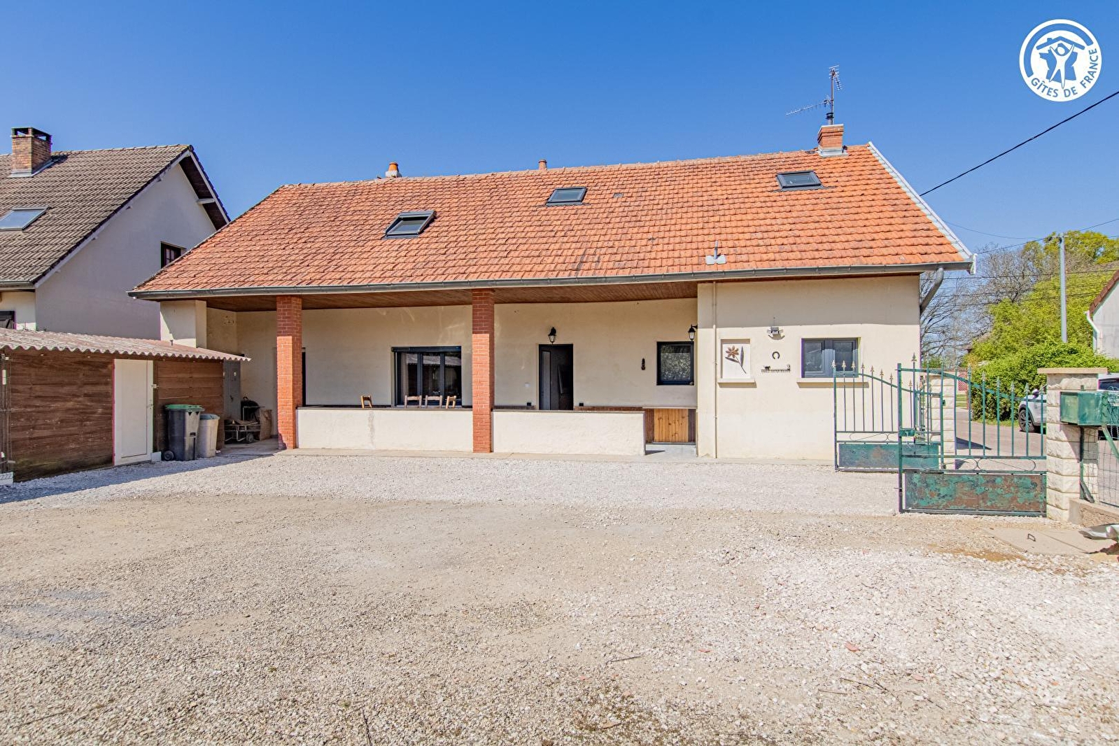 Authentique fermette traditionnelle du XIXe chargée d'histoire "familiale" soigneusement restaurée, nichée au calme en bordure de ruelle à deux pas d'un citystade, au cœur d'un paisible petit village typique de la douce campagne bressanne. Lové sur l'ancienne "voie romaine", blotti à l'orée de la vaste forêt domaniale de Pourlans ("poumon vert" de 660 ha parsemé d'étangs & de chemins pédestres, à parcourir à pied ou VTT), voisinant les rives de la Saône & du Doubs (paradis des kayakistes & pêcheurs, célèbre pour ses silures, sandres ou carpes, doté de plages naturelles, remarquable écosystème protégé en "Zone Natura 2000" pour son exceptionnelle réserve ornithologique riche de 160 espèces d'oiseaux & variétés végétales très rares) au creux d'une douce plaine agricole, Clux-Villeneuve profite d'un apaisant écrin champêtre & naturel préservé conjuguant champs de cultures, prairies, étangs & vastes forêts sauvages. Spacieux gîte de très bon confort. Vaste pièce de vie de 50m². Chaleureux cachet campagnard aux accents contemporains "twisté" par quelques douces touches "vintage" (dont un très beau sol en "terrazzo" côté séjour) & l'âme du bâti d'origine (charpente, superbes poutres & piliers en bois). Beaucoup de charme & caractère. Ambiance cosy & douillette. Équipement complet de qualité. Vaste terrasse abritée ouverte sur un agréable jardin clos de 500m².