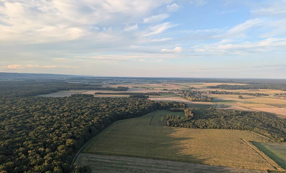 Nous voilà déjà à 1500 m d’altitude, contemplant les rivières, les forêts, les champs et nous apercevons au loin les vignobles de la Bourgogne (côte de Nuits, côte de Beaune, côte Chalonnaise) ainsi que les villes de Beaune et Dijon. Le temps semble suspendu, pourtant l’heure s’écoule en silence. Seul le coucher du soleil, avec sa douce lueur, nous rappelle que le temps poursuit sa course. Chaque instant est une immersion totale dans la beauté et l’immensité des paysages bourguignons.