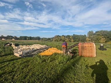 En comptant notre pilote, nous sommes 4 à embarquer à bord de la nacelle pendant que le reste de l’équipe reste au sol pour venir nous récupérer à l’atterrissage. Et oui ! Voler en montgolfière, c’est beaucoup de logistique, car on ne dirige pas une montgolfière comme un avion. D’ailleurs, on ne la dirige pas vraiment, elle vole toujours au gré du vent, c'est-à-dire dans la direction et à la vitesse du vent. Résultat, on ne sait jamais vraiment où l’on va atterrir !